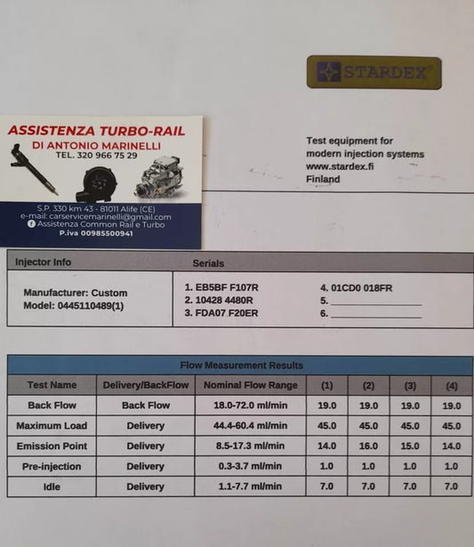 Iniettori ricondizionati 0445110955 Citroen, Peugeot, Ford, Opel 1.5 TDci