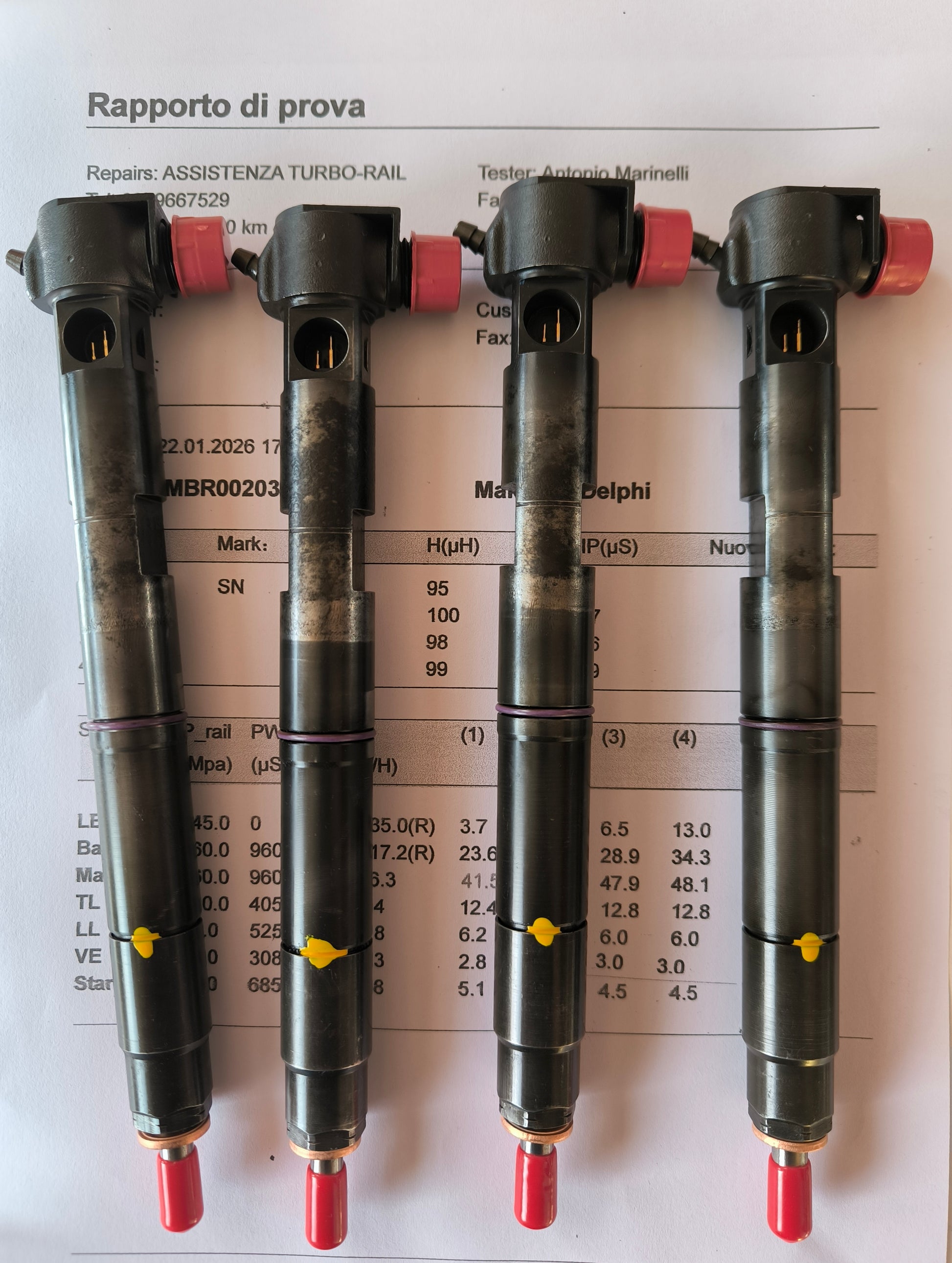 Prima della spedizione di iniettori nostri aspettiamo la foto di iniettori vecchi, già smontati, che conferma la loro integrità.