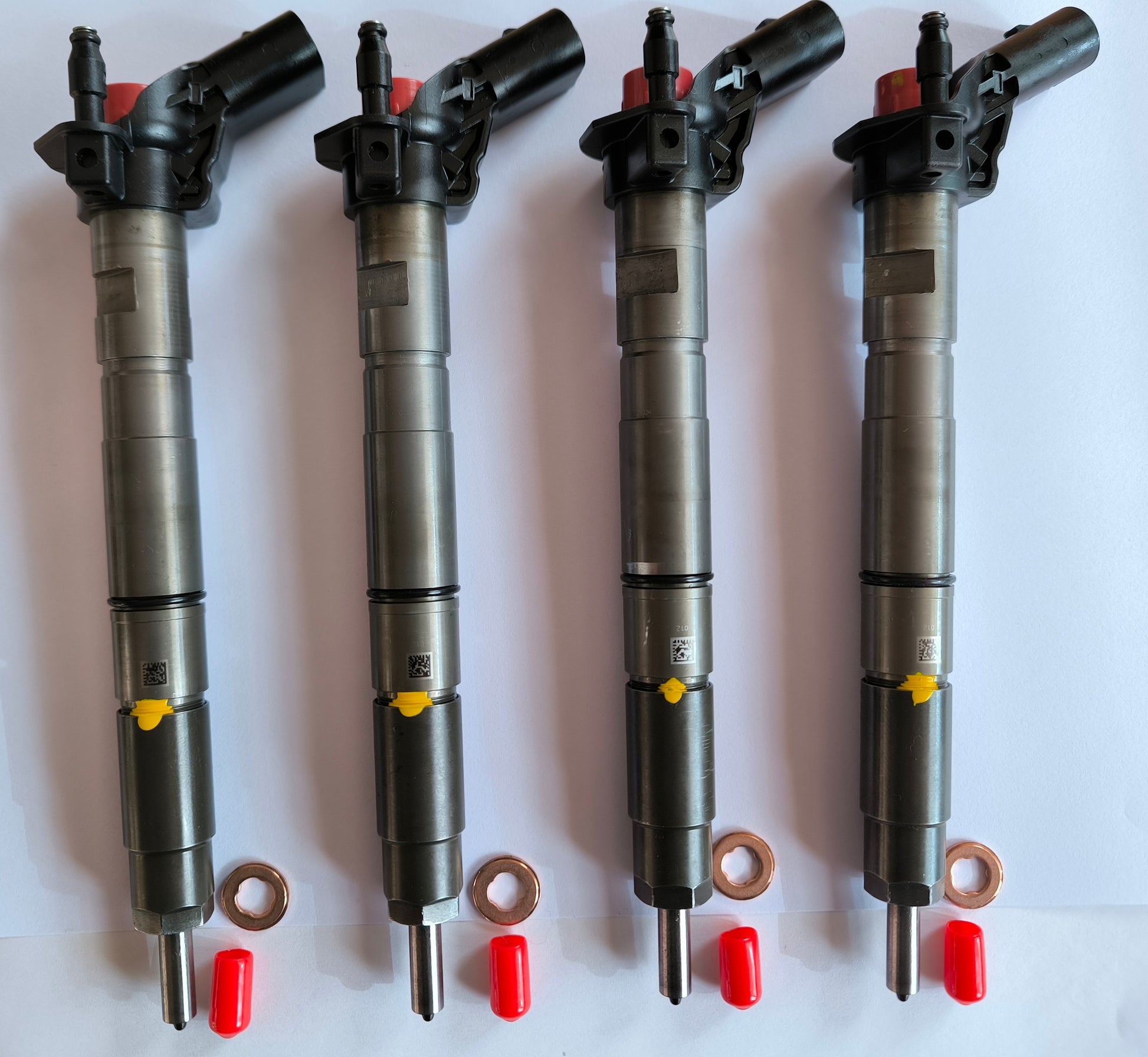 Iniettori revisionati al banco prova con pulizia ultrasuoni, taratura, sostituzione valvole di ritorno e generato codice nuovo.