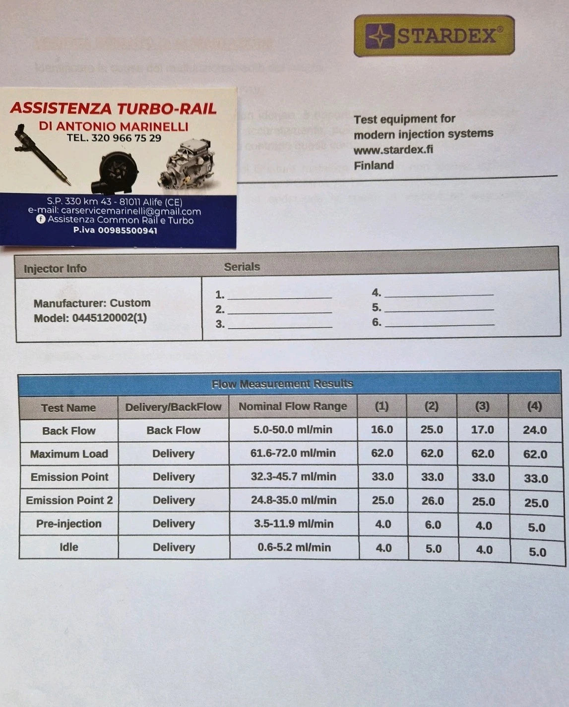 Iniettori revisionati al banco con bagno ultrasuoni, flussaggio e taratura.