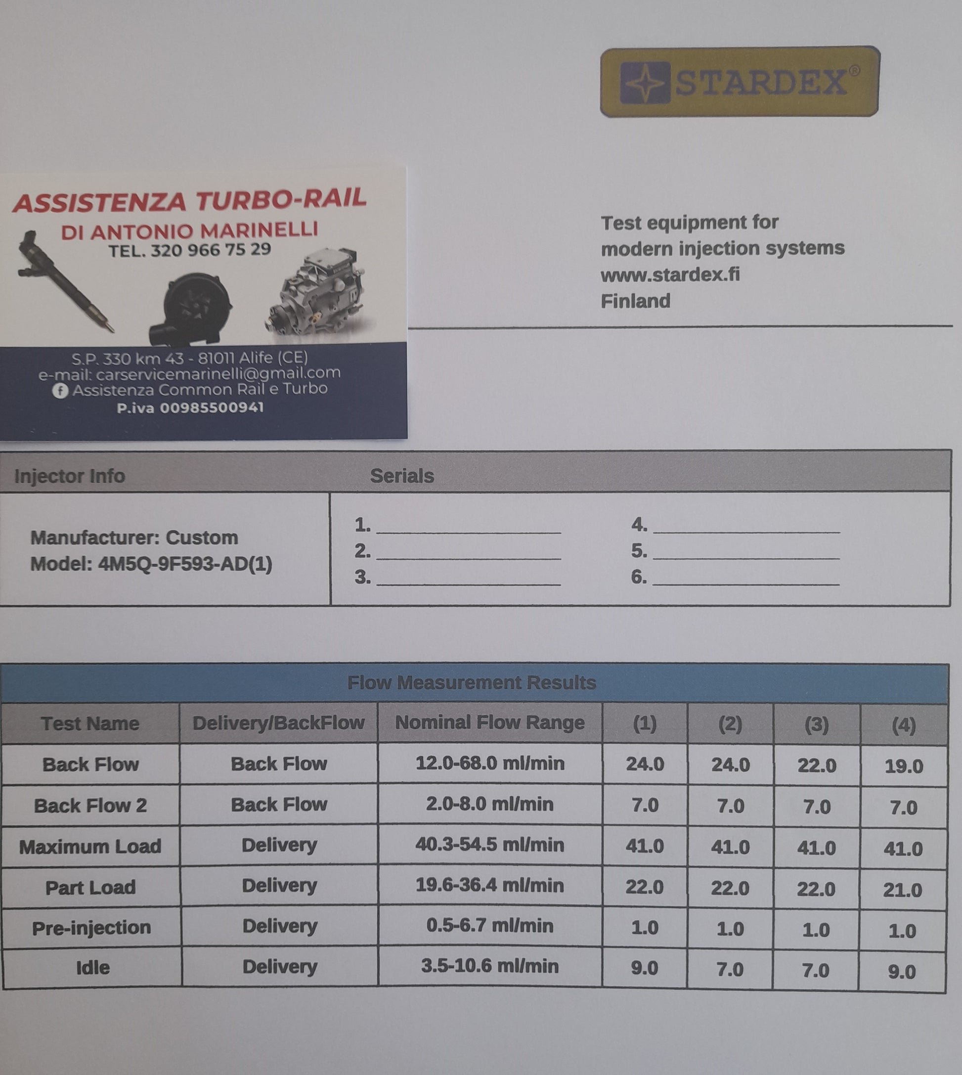 Iniettori revisionati al banco con flussaggio, taratura e sostituzione parte elettronica.
